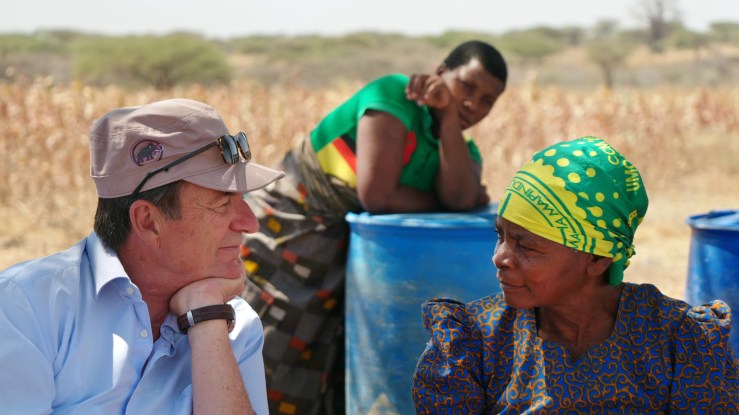 Patrick Hohmann im Gespräch mit Baumwollbauern.
